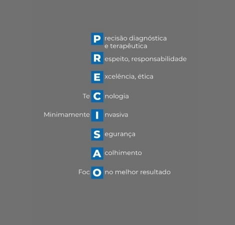 Com uso de tecnologia de ponta, técnicas minimamente invasivas e especialistas experientes e atualizados é possível a realização de diagnósticos e tratamentos minimamente invasivos com precisão. Inclusive também gostamos de utilizar o acrônimo PRECISÃO para elucidar o Padrão RAINTER de Atendimento.